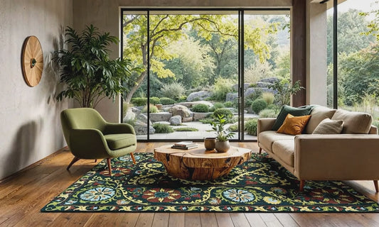 A vibrant reimagining of tradition. The Suzani collection takes inspiration from the symbolic colors and intricate designs of traditional Central Asian embroidery. Each rug is infused with the cultural significance of its symbols—circles for eternity, pomegranates for fertility, and geometric shapes for protection. This Indoor / outdoor rug is part of the Ecorug program recognised for durability, washable, recyclable, and compatible with children and pets.